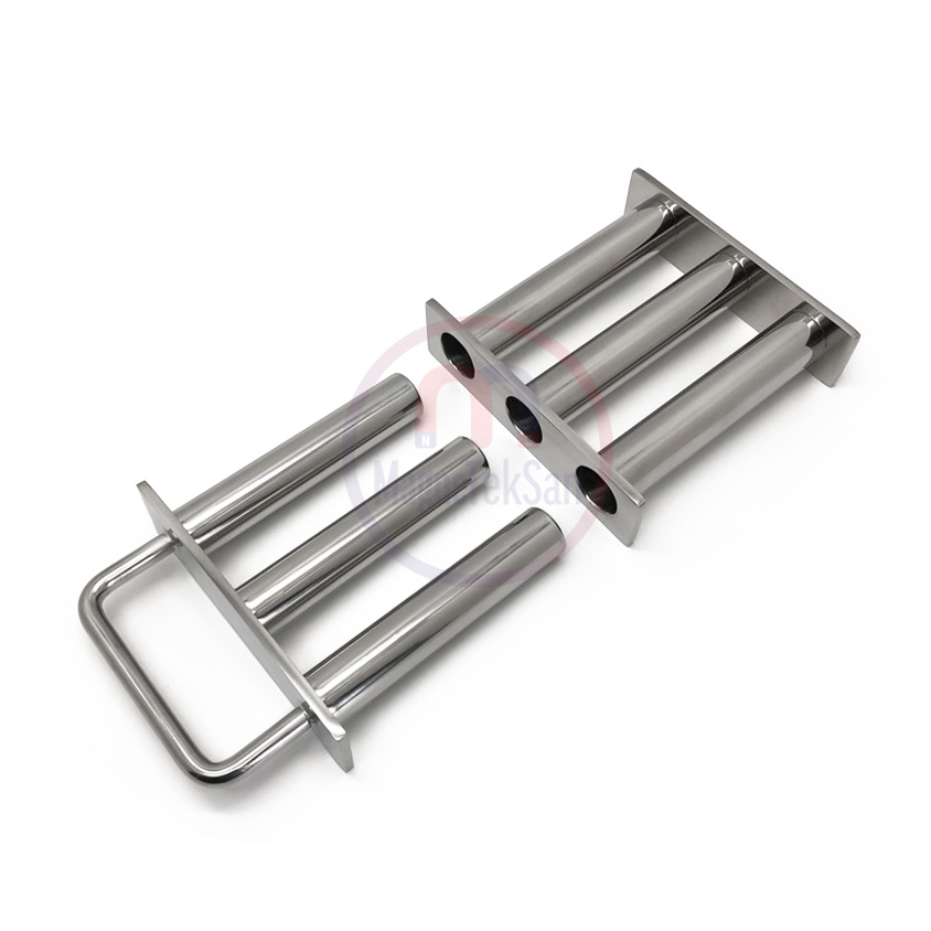 290x290 mm giriş elek mıknatıs seperatör ürünümüz kendi tesislerimizde üretilmektedir. Fabrikalarda ürün akışlarının çıkış borularına veya döküldüğü alanlara monte edilir. Bu sayede dökülen gıda, plastik, cam, seramik gibi ürünlerin içinden metaller çekilir. Havada görünmeyen metal tozlarını dahi çekebilen bu kare elek mıknatıslar firmanıza özel boyutlarda ve çekim güçlerinde imal edilebilir.