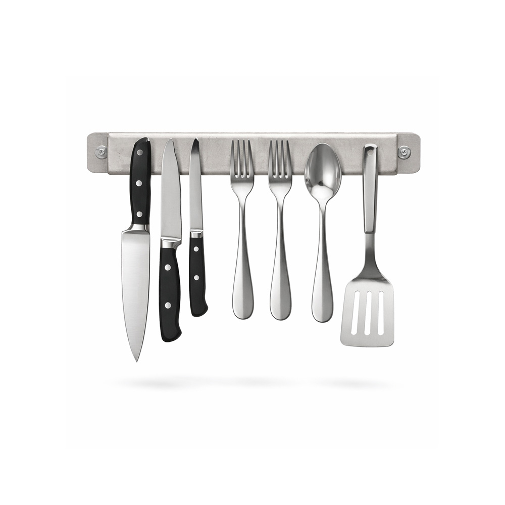 Neodyum mıknatıslı, 360x50 mm ölçülerinde, mutfakta çatal, bıçak ve metal mutfak gereçlerini düzenli, güvenli ve hijyenik şekilde saklamak için tasarlanmış mıknatıslı tutucudur. Duvara monte edilerek tezgâh alanından tasarruf sağlar.