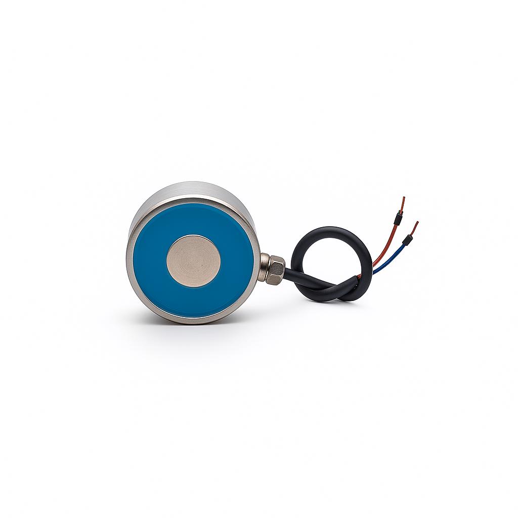 Ø90×60 mm boyutlarındaki bu 24V DC elektromıknatıs, 2 adet M6 bağlantı noktası, yandan rakorlu kablo çıkışı ve reçine kaplı iç yapısı sayesinde endüstriyel ortamlarda yüksek performans ve uzun ömür sunar.