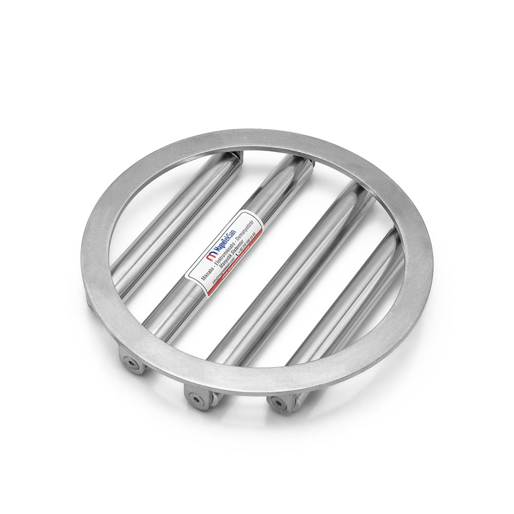Our fully stainless, liquid-compatible, and sealed 250 mm diameter grid magnet separator is manufactured in our own facilities. It is mounted on the outlet pipes of product flows or at discharge points in factories. In this way, metals are removed from materials such as food, plastic, glass, and ceramics. Grid magnets that can even capture invisible airborne metal dust can be manufactured in custom sizes and magnetic strengths according to your company’s requirements.